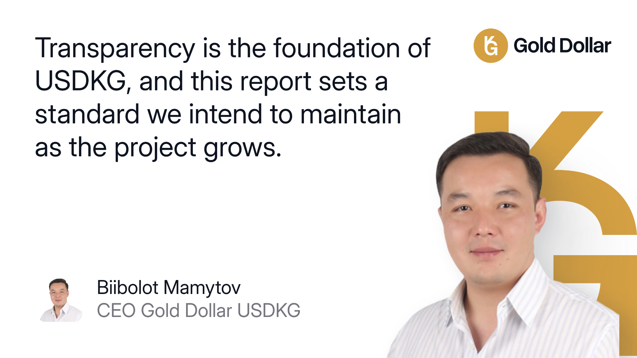 To reflect the significance of the audit, Biibolot Mamytov, CEO of Gold Dollar, shared his perspective on how the findings reinforce the stablecoin’s credibility.